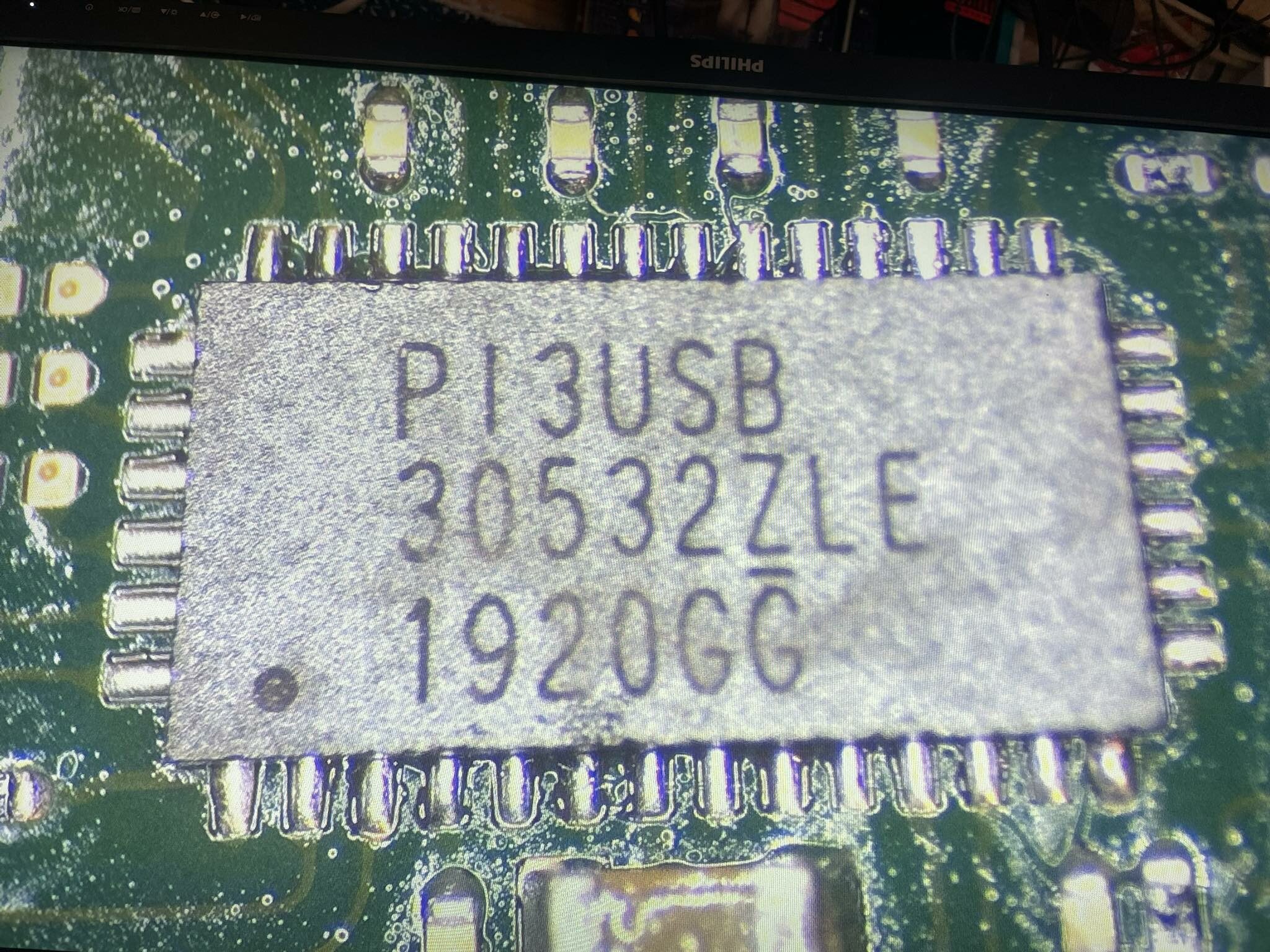 J’ai donc testé les filtres et résistances qui remontent jusqu’à la puce vidéo/audio P13 , tout ok. Il ne me restait plus qu’à remplacer la puce P13 ( bien connue sur la switch ! ) qui avait du prendre un choc électrique et griller suite au défaut de la prise USB-C .